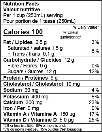 ƚƚAccording to regulations currently in force in Canada, the Canadian Food Inspection Agency (CFIA) ensures the monitoring of pesticides residues for potential contamination in food. Naturally GMO-free. No preservatives, like all milk.