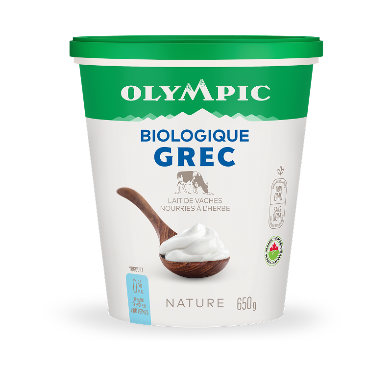 Notre yogourt Biologique grec nature à teneur élevée en protéines est fait avec du bon lait frais biologique de nos vaches nourries à l’herbe et des ingrédients de source 100 % naturelle. Le yogourt biologique Olympic, c’est bon pour tout le monde : les gens, mais aussi nos vaches.